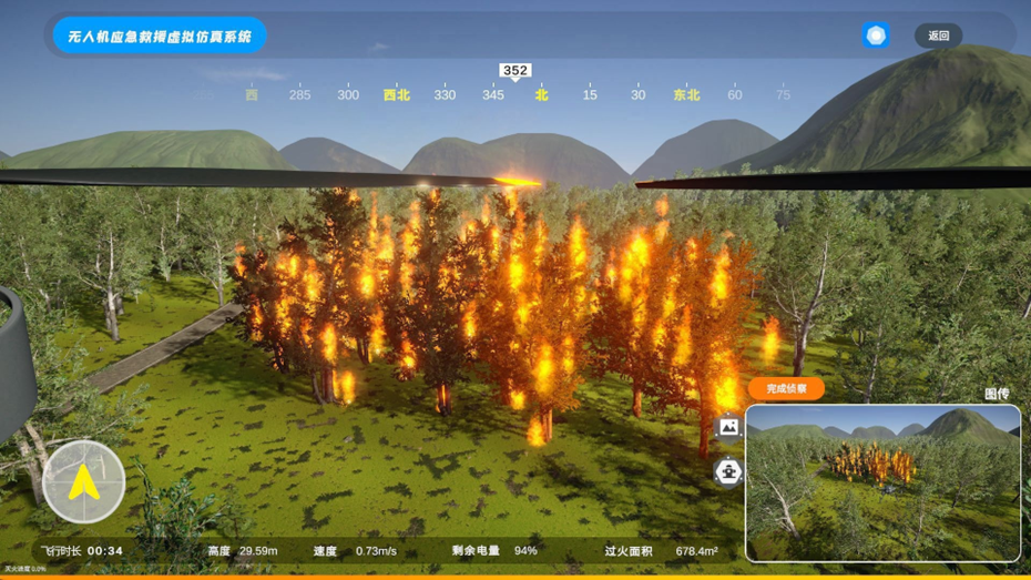 无人机凭借小巧轻便、高效安全的优势,成为水域救援强有力设备之一,通过操控无人机可将救援设备高效安全的送达指定地点以保障受灾人员的物资补给,该系统通过虚拟仿真还原受灾场景,通过使用真机遥控器操控虚拟无人机进行实战救援前的训练。
