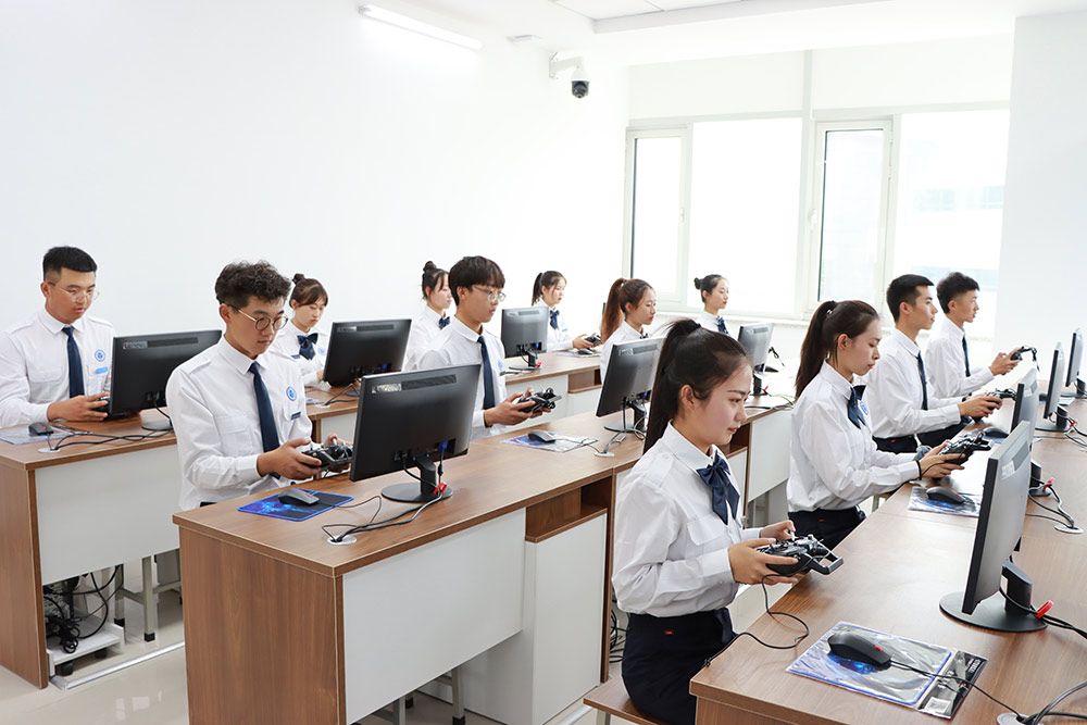 学生在练习无人机模拟仿真飞行
