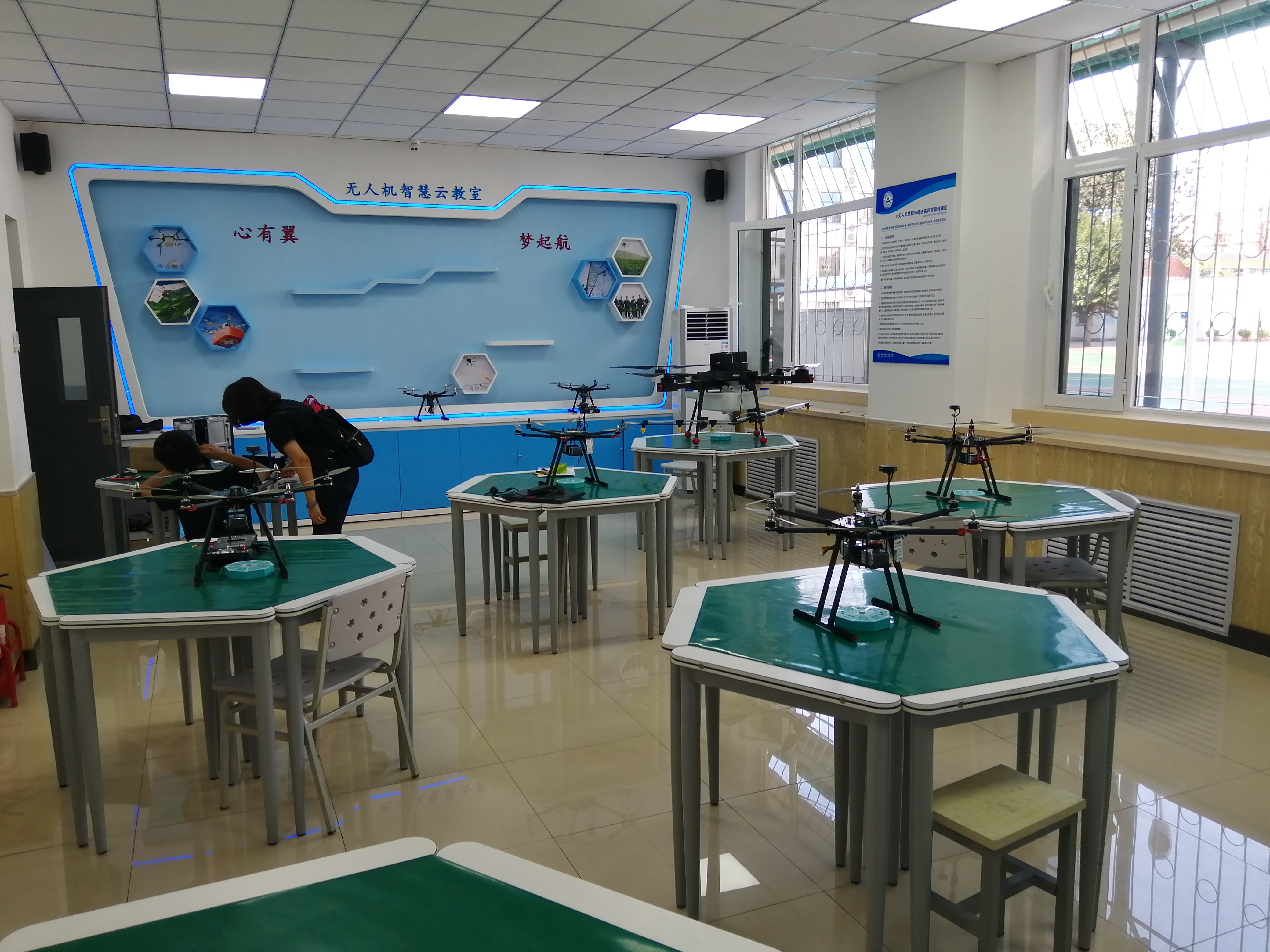 学校无人机智慧云实训室建立于2020年下半年,设备包含小型拆装实训无人机、小型六旋翼实训无人机、八旋翼电子执照考证无人机、农用植保教学无人机、程控教学编程无人机,可满足基础拆装、植保喷洒、电子执照考证等教学内容,目前师资培训已完成,实训室已投放使用。
